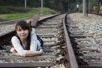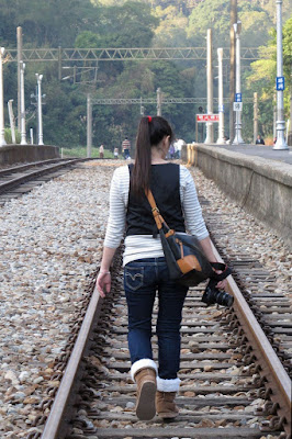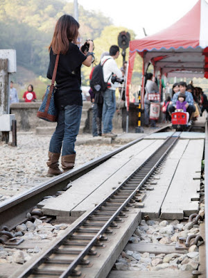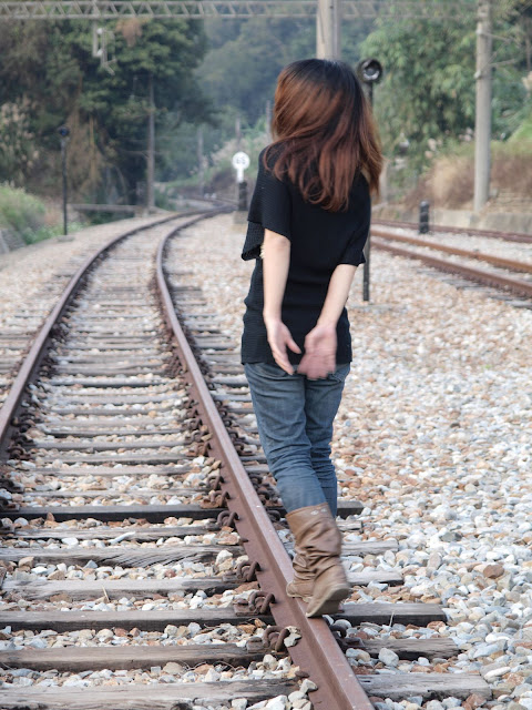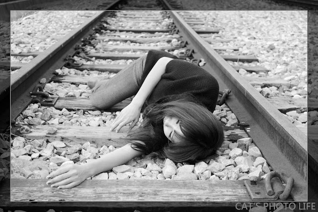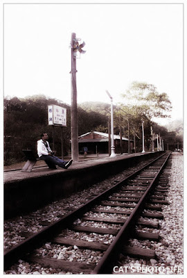 鐵路旁邊有個小木屋,利用一下窗戶的反射取景!